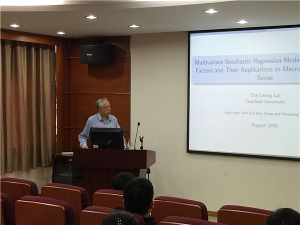 讲座伊始,由学院副院长韩冬梅老师致欢迎辞,并介绍了主讲人黎子良教授的相关情况。黎子良教授,现任美国斯坦福大学统计系教授(统计系原系主任),斯坦福金融工程学院计算和数学工程研究所荣誉院士,斯坦福金融数学工程、金融与风险建模研究所主管。1983年获国际统计学界COPSS奖(被视为国际统计学“诺贝尔”奖),系该奖首位华人得主。他在2008年出版的《金融市场的数学模型和方法论》,2013年出版的《动态风险管理:金融模型与数学模型》以及《算法交易和量化科学》已经成为斯坦福大学的必修课教材。黎子良教授在全球享有盛誉。