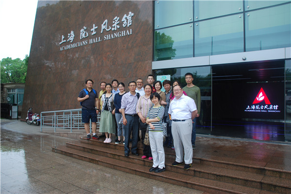 之后,大家冒雨转至坐落在杨浦区黄兴公园外的上海院士风采馆,参观了生活和工作在上海的两院院士的工作、生活音像信息、文献实物、照片资料,领略了院士们的智慧魅力和学术人生,为他们深邃的思想和渊博的知识所感染。