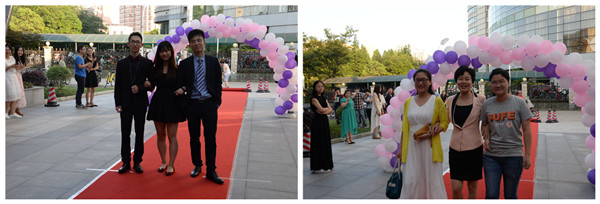 下午17点30分,学院领导、老师们,以及为此次毕业晚会盛装打扮的毕业生们陆续抵达会场,他们走上红毯在签名板上留下属于自己的印记。与往年的红毯环节不同,今年红毯的两旁特别设置了照片墙,从毕业生中征集到的承载着他们美好青春的照片被精心悬挂起来,诉说着属于同学们的故事。