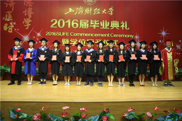 6月21日,上海财经大学2016届毕业典礼暨学位授予仪式在武川路校区创业中心报告厅隆重举行。仪式设第四教学楼和羽毛球馆两个分会场,实现全过程实况转播。校党政领导樊丽明、刘永章、刘兰娟、方华、蒋传海、陈信元、姚玲珍、朱鸣雄、郑少华及各学院(所)、相关职能部门领导出席毕业典礼。毕业典礼由副校长刘兰娟、副校长姚玲珍主持,由副校长刘兰娟宣读2016届毕业生学位授予的决定。