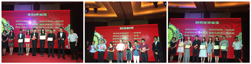 晚会现场揭晓了前期通过学院团学联微信公众号由毕业生投票产生的“上财公管2016最具影响力师生”奖项,学生代表为7名获奖教师颁发荣誉证书和奖杯,学院副院长刘小兵和方芳老师为获奖学生颁奖。晚会还特别为在父亲因病去世后、将社会各界捐助给父亲治病的余款逐一退还并设立学校“汇爱大病重病救助基金”的朱莹莹同学颁发了“爱心之星”奖;为优秀退伍学生、学校2016年征兵形象大使夏沁旎同学颁发了“军旅之星”奖。