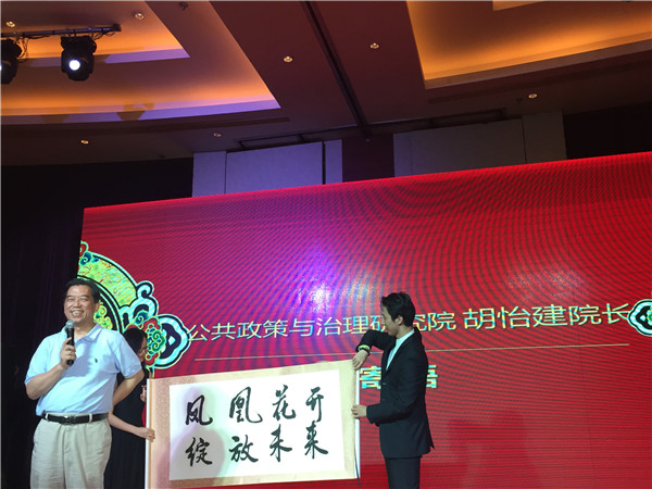 挥手从兹去,难忘母校情。毕业生代表向学院献礼“江山如画”图,表达了全体毕业生对学院发展的美好祝愿。公共政策与治理研究院院长胡怡建教授也特别为2016届毕业生挥毫泼墨、题字祝福,并寄语毕业生们能够凤凰花开、怀揣梦想、绽放未来。