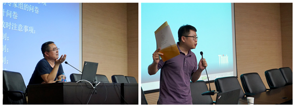 操作手册的培训,主要从千村调查的社会意义和学术意义、千村调查的调研任务、学术诚信、安全提醒等方面展开,对参加调查的同学从各个方面提出了严格要求,强调了诚信、安全等重要方面,同时也寄予了殷切期望;宣传部对学生在调研过程中如何拍摄照片、视频,如何有效记录调研过程进行了指导和培训;人文学院的老师从基本的社会调查方法入手对学生进行较为系统的社会调查方法培训;调查问卷培训是千村培训的重点部分,今年的主题是中国农村创业现状调查。第九期问卷较以前有了很大的改变和升级,为达到最优的调研效果,专家组经过反复商讨和论证,最终确定了五份不同的问卷:镇长问卷、村长/村支书问卷、村委会班子问卷、创业者问卷和非创业者问卷,这对参与定点调研的同学提出了更大的挑战和更高的要求。工商学院专家组的老师针对问卷中的问题进行了分类指导,对各类问题的区分以及在调研过程中遇到各种实际情况时的应对方法也进行了细致地讲解。讲解结束后,部分同学还针对具体问题与培训老师进行了互动交流,老师对每个同学的问题进行了耐心的讲解与答复。