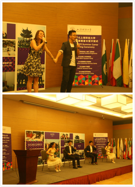 开营式在上海财经大学民乐团的二胡四重奏中拉开序幕,合奏曲目为《Always》。国际文化交流学院老师张剑和俄罗斯留学生复活共同演唱《四海同心》。