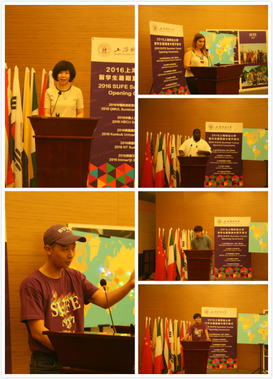 教师代表管斌老师以及学生代表分别进行了发言,表达了对于暑期夏令营的期待和憧憬。学生代表为来自英国伦敦玛丽女王大学的Justin Tizzard、美国圣路易斯大学的Vernon Wells、韩国建国大学的郑准教、泰国的Cotton以及美国纽约州立大学纽伯兹分校的MEI Jacky。
