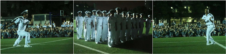 悠扬、恢弘的大合唱《军港之夜》奏响了晚会的序曲,随后《歌曲串烧》、大合唱《强军战歌》、《歌舞串烧》、舞台剧《军港之夜》、诗朗诵《信念追随》、《新疆民族舞》、《阿卡贝拉》等依次上演,构成一组组既欢快又严肃的协奏曲,晚会内容不仅表达了对祖国强大、国防强盛的殷切希望,也表达了共产党人坚定的理想信念——共筑强军魂,同圆中国梦。晚会最后,全体起立放声高唱激昂的《人民海军向前进》,将晚会推向高潮。