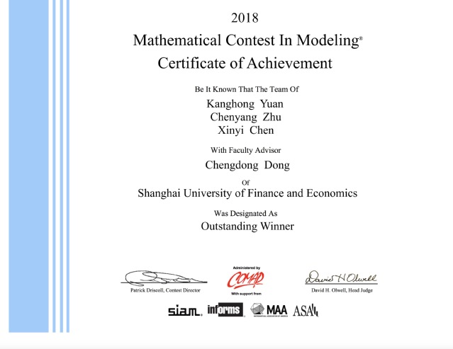 2018年美国大学生数学建模竞赛结果于近日公布,我校学子喜获佳绩。本次竞赛我校共有63支队伍参赛,经过激烈角逐,其中1支队伍摘得特等奖。2018年全球共有20602支队伍参赛,仅有33支队伍获得特等奖。我校另有12支队伍获得一等奖,25支队伍获得二等奖,部分队伍获被授予成功参赛奖。美国大学生数学建模竞赛(MCM/ICM)由美国数学及其应用联合会主办,是唯一的国际性数学建模竞赛,也是世界范围内最具影响力的数学建模竞赛。本年度赛事于2月9日至2月13日举行,来自美国、中国、加拿大、英国、墨西哥、澳大利亚、南非等多个国家地区的高校参与,包括哈佛大学、哥伦比亚大学、北京大学、清华大学等著名学府。