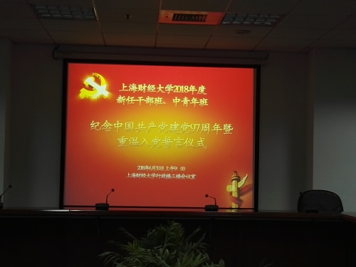 为庆祝中国共产党建党97周年,6月30日上午,在党校统一部署和安排下,我校2018年新任干部、中青年骨干教师培训班学员在课堂上重温入党誓词,学习并同唱《我宣誓》。活动由本届新干班学员、合作发展处副处长王峰主持,特邀校学生合唱团指导教师张天担任指导。
