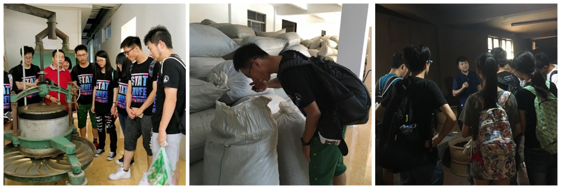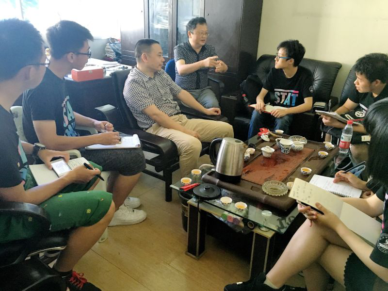 第一天,实践小队先后走访了武夷山市茶叶局、武夷山茶业同业公会以及包括北岩茶厂在内的两所茶厂。每到一个地点,热情的当地人都“以茶会友”,实践小队深刻地感受到茶叶已经深深融入武夷山人的生活。针对实践小队的调研问题,武夷山市茶叶局副局长、武夷山茶业同业公会会长和两位茶厂的负责人都详细地为大家给出了自己的答案。首先,影响茶叶价格的因素繁多——包括产地、工艺(茶青到半成品是重要的过程)、品质、口感、营销等等,茶商并没有一个固定的定价模式可供参考。其次,近两年虽然出现产大于销的状况,但是否存在“库存”、“积压”这样的说法还有待商榷。因为大部分茶商都会留存有一定量的武夷岩茶来拼配,调整来年精茶的质量,况且武夷岩茶本身极易保存、不易遭受侵损而变质,甚至有少部分茶商销售“陈茶”。