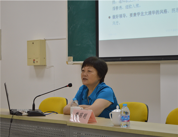 紧接着,樊校长作“谈谈干部的德才兼修”主题报告。她提出干部要德才兼修,并分别从三方面阐释了自己对“德”和“才”的理解。樊校长认为,“德”是敬业、担当、奉献,“才”则需“重人”、“治理”与“引领”。针对高校管理者如何做优秀干部,樊校长强调了四点:第一,善于谋划;第二,善抓重点;第三,善于沟通;第四,重在落实。樊校长的报告理论联系实际,深入浅出,生动精彩,让大家更加明确了前进的目标,进一步坚定了前进的方向,给参加培训的干部管理学员们带来了新的启示。