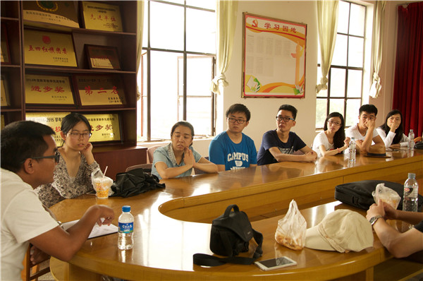次日下午,孟连县一中团委书记张岩狂老师与队员们进行了交流,他详细介绍了孟连县的风土人情及学校教学情况。孟连县全称孟连傣族拉祜族佤族自治县,辖区内多民族文化并存,对待教育的态度参差不齐。一中教育资源缺乏,但近年来稳步提升,在今年高考中有10人达一本线,创历史佳绩。此外,书记还向队员们简单介绍了参加此次暑期班的同学情况。