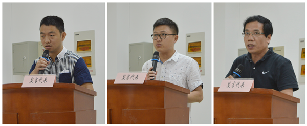 接下来,由潘徐恩、王正、何其祥三位老师分别就“学院的改革与发展”为主题作大会交流发言。第一组学员代表潘徐恩表示要因地制宜制定学院的发展规划,不能够单纯照搬本部的管理模式,更要结合当地特色,有针对性地制定制度,开展工作。王正代表第二组学员以“共建、共融、共享、共赢”为题进行了汇报,针对如何运用好本部的理念和资源,他提出,“共建是前提,重在理念先行;共融是路径,重在点线面结合;共享是是追求,重在均衡协调;共赢是目的,重在优势互补”。第三组学员代表何其祥就本次培训心得体会和浙江学院未来的工作思考两个部分进行了梳理,他表示要将学员们所学到母体学校的服务和管理理念贯穿到浙江学院的发展中去。代表们的发言折射出全体学员们在思想认识和实际行动中经受了洗礼,同时对学院的发展建设提出了很多建议和思考。