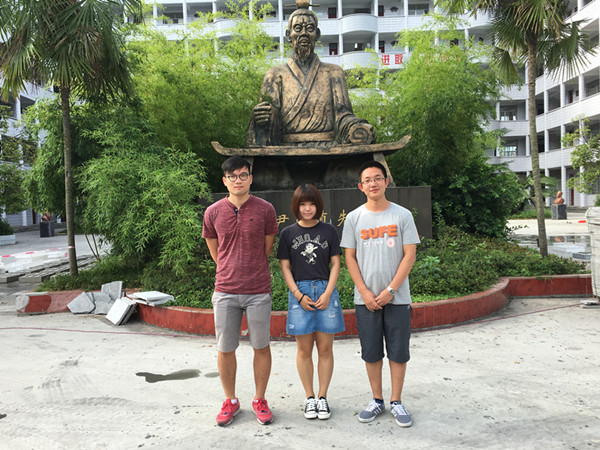 研究生支教团成员包括信息管理与工程学院的宋亦心心和郭旺辉,外国语学院的温瑶,统计与管理学院的乐沅,金融学院的番咏梅,人文学院的高子君六名志愿者。前三位同学的的志愿服务地点位于贵州道真县的玉溪中学,而后三位同学则位于道真县印真中学。五个小时的车程、四百公里的山路带来的劳累并没有减弱他们的热情。