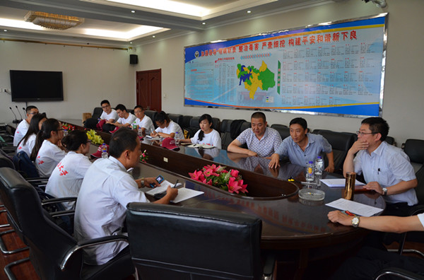8月1日,调研队伍首先抵达了襄垣县农业委员会,扶贫办连主任热情的在门口迎接了我们,并且在会议室与小分队成员们亲切交流。许旭荣老师向领导班子介绍了我们此次千村调查的背景与主题,说明了此次襄垣之行的调研目的和保持数据延续性的意义。连主任从发展生产、动物养殖、特色产业、虫害防护、农户指导、培训鼓励、脱贫效果几大方面向我们介绍了襄垣的产业发展情况,重点突出了中草药种植,黄梨种植,油籽牡丹的特色性与经济性,让小分队成员们们对襄垣县整体经济情况形成了宏观上的认识。通过与连主任的交流,为我们稍后挺进下良镇与古韩镇打下良好的信息基础。