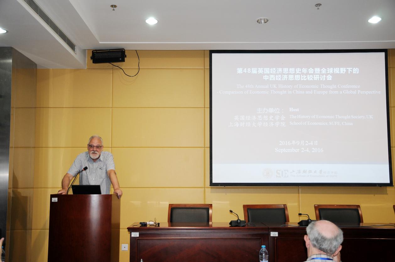 2016年9月2日-4日,由经济学院经济史学系、英国经济思想史学会共同举办的第48届英国经济思想史年会暨全球视野下的中西经济思想比较研讨会在我校经济学院成功举行。本届年会是英国经济思想史学会自1968年成立以来首次移师到欧洲以外的国家举办,意义重大。开幕式由经济学院经济史学系特聘教授、英国曼彻斯特大学Terry Peach教授主持。我校副校长蒋传海教授,经济学院经济史学系系主任、校人事处处长、中国经济思想史学会副会长程霖教授,经济学院党委书记王昉副研究员出席开幕式。