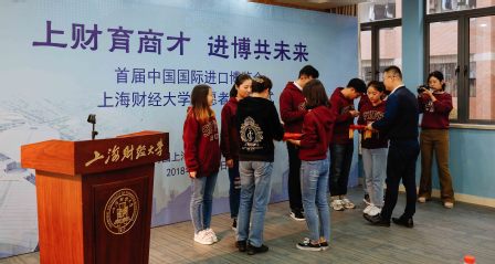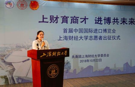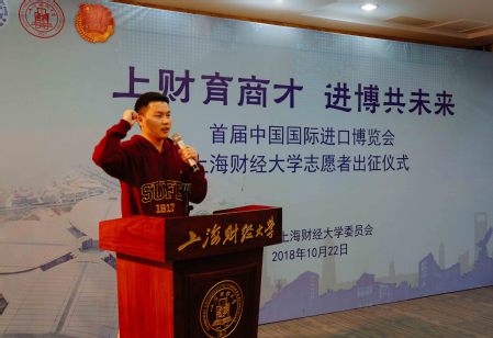 10月22日下午,首届中国国际进口博览会(以下简称进博会)上海财经大学志愿者出征仪式在我校大学生活动中心A104隆重举行,团上海市委副书记戴冰、我校副校长刘兰娟、上海财经大学进博会志愿者工作领导小组成员单位负责人、学院(所)分管学生工作副书记,以及学校140名进博会志愿者共同出席仪式。