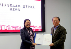 理事会换届大会结束后,上海财经大学教育发展基金会第三届理事会召开第一次会议,参会理事审议并投票表决方华为基金会理事长、姚玲珍为副理事长、陈红梅为秘书长、王峰为副秘书长。上海市社会组织管理局刘正同志为新任理事长方华颁发聘书,新任理事长方华为各位理事、监事成员颁发聘书。会议审议听取并表决通过了《基金会2019年工作计划和财务预算》和投资咨询与风险控制委员会成员名单提案。