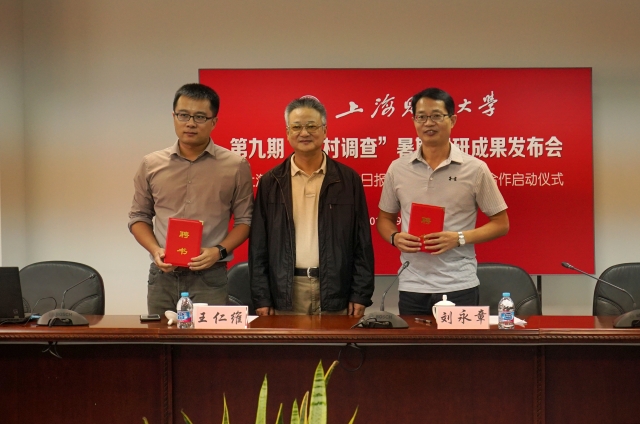 随后,校领导向上海观察城事频道总监王仁维先生和上海观察运营、技术中心总监张玮先生颁发“上海财经大学‘千村调查’项目实践导师”聘书,并由张玮先生致辞展望了该项目双方未来的战略合作。