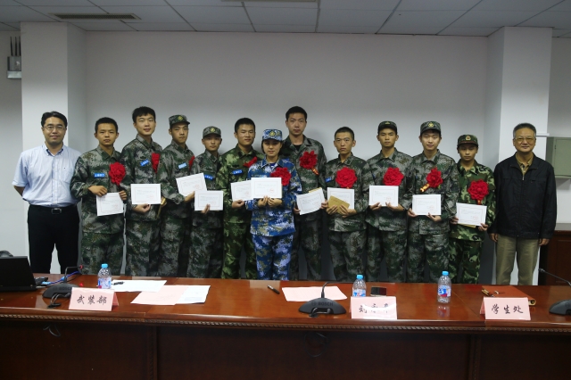 我校今年共有3名学生退伍,21名学生入伍。今年退伍返校的三位同学分别是:人文学院欧阳海鹏、公管学院铁金堂和信管学院雷丞,他们学生结合自己在部队的两年,介绍了生活和训练情况,传授宝贵经验,畅谈从军感受。他们用“责任、坚持、成长、财富、感恩”等词汇诠释了自己由大学生到中国人民解放军的光荣蜕变,感慨道:不经过部队这个大熔炉的煅烧,你永远不知道部队生活将带给自己怎样的收获,不当兵会后悔一辈子!入伍的二十一位同学中,唯一的女兵陈乃绮同学作为代表,坦言自己经过努力终于实现了携笔从戎的梦想。自己一定会传承和发扬上财的传统和精神,争取在部队早日把自己锻炼成为有文化、有纪律、有担当、有特长的现代军人。她还代表全体入伍学生向关心他们的领导和老师表示感谢。