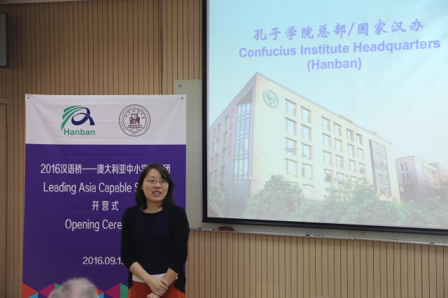 随后,汉办国际交流处重大项目官员赵佳佳就汉办的职能、组织架构与重点项目进行了介绍,期待日后在孔子课堂、孔子院奖学金项目方面与澳洲中小学有更紧密的合作。