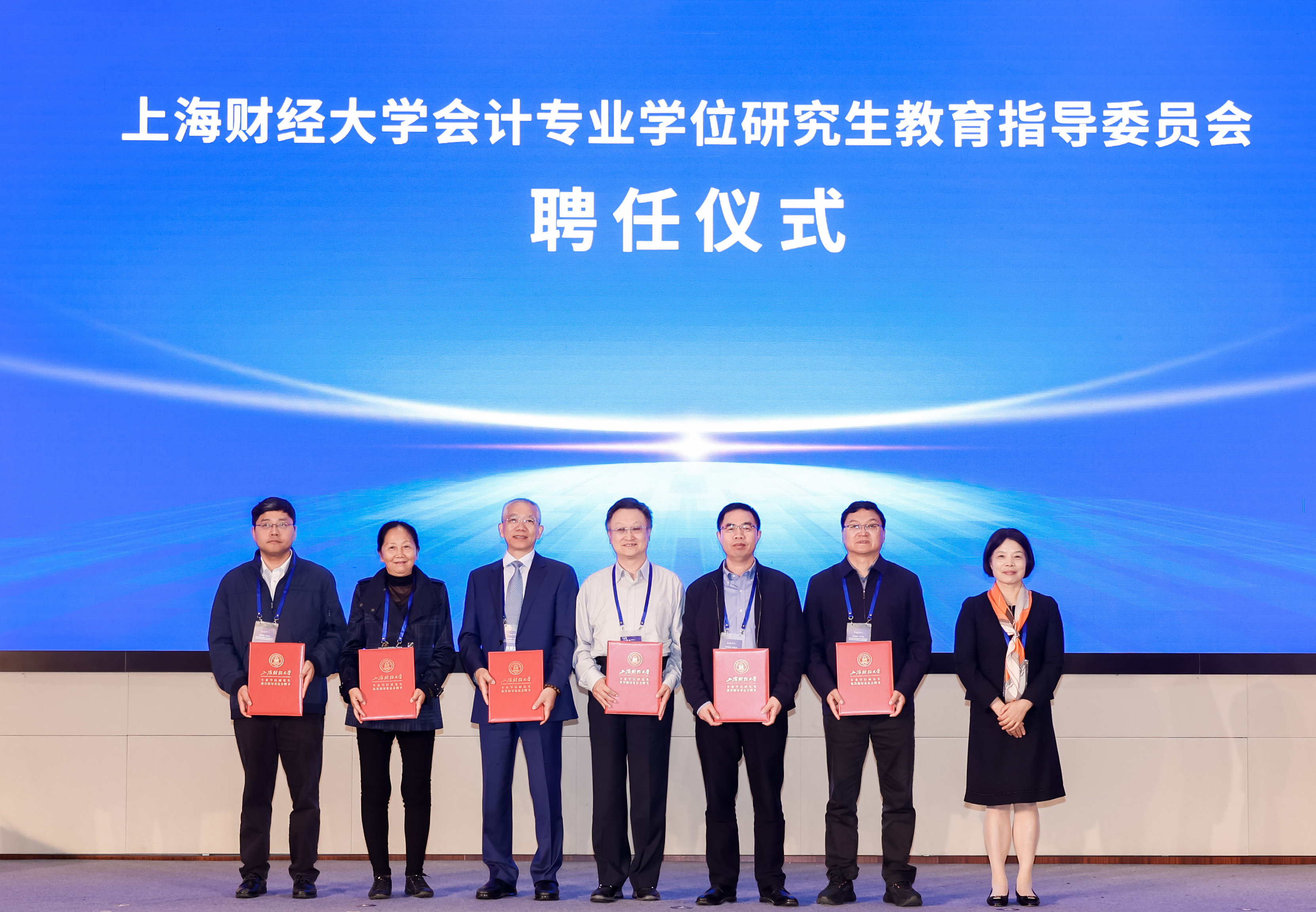 当天仪式上,上海财经大学副校长姚玲珍为新一届上海财经大学会计专业学位研究生教育指导委员会委员颁发聘书。