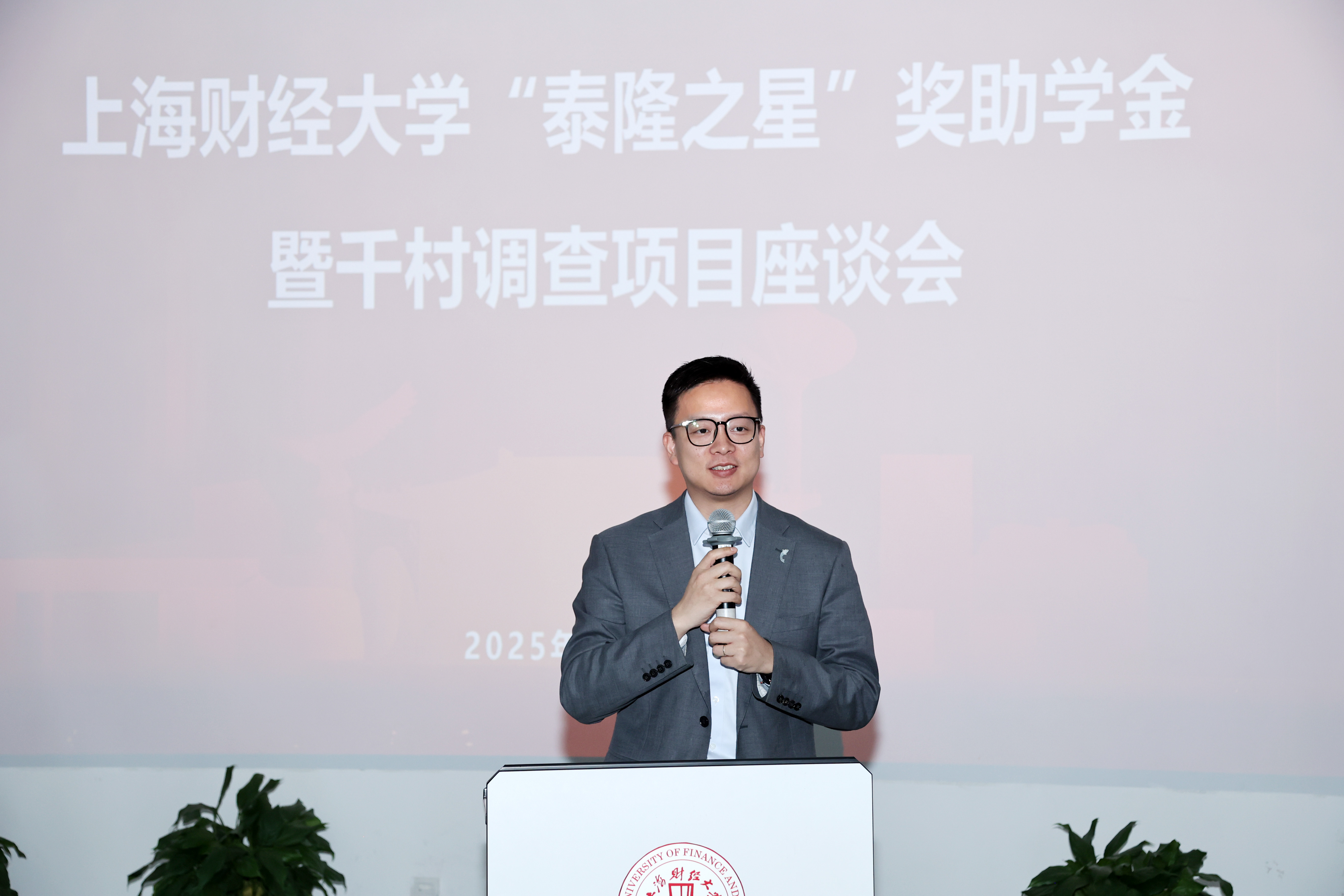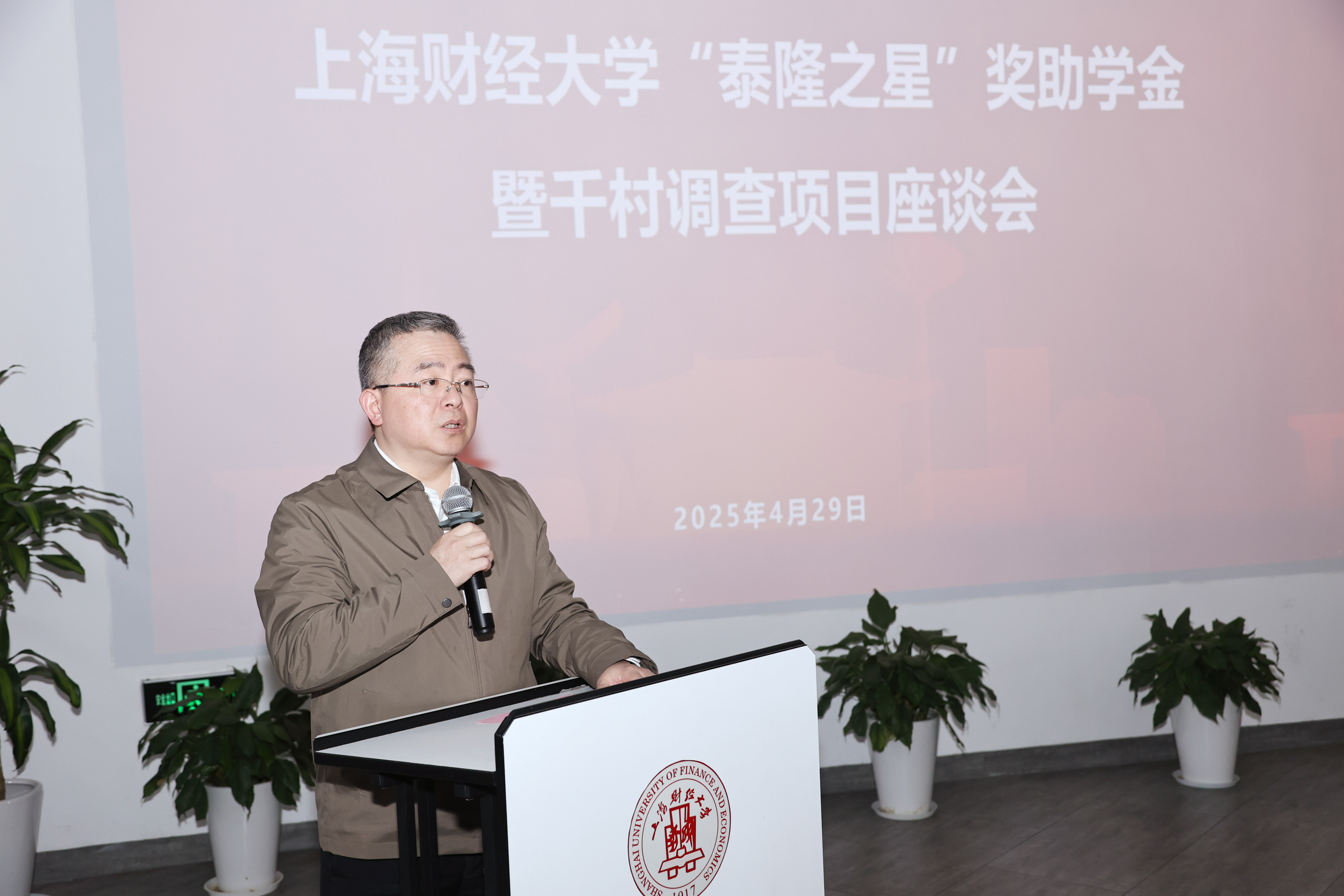 4月29日下午,上海财经大学“泰隆之星”奖助学金暨千村调查项目交流座谈在英贤图书馆七楼活力岛顺利举行。泰隆银行上海分行行长王小四、浙江泰隆慈善基金会秘书长蔡鸿鹏、上海财经大学校党委副书记周国良及相关职能部门负责人出席本次活动。活动由上海财经大学教育发展基金会项目主任李珍主持。