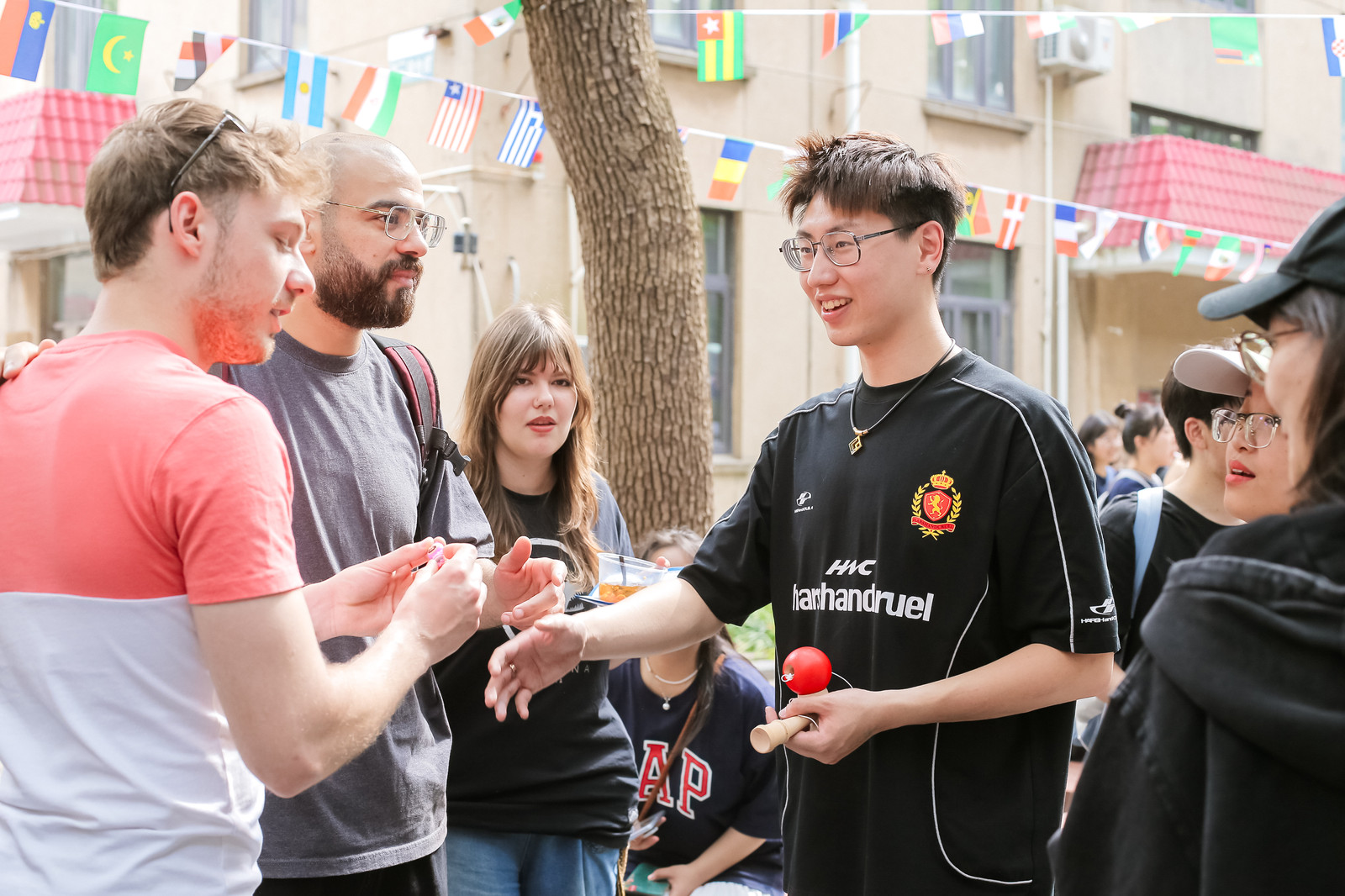 活动现场,国际学生通过传统服饰展示、手工艺教学及趣味互动等方式,展现各国文化。来自乌兹别克斯坦的2023级国际经济与贸易本科生宋伟博身穿传统服饰,现场展示Kumush Tanga(银币)游戏,为参与者讲述丝绸之路上的文明交流史。他说:“Kumush Tanga不仅是我们文化中的重要元素,更是丝路贸易与文化交流的象征。”