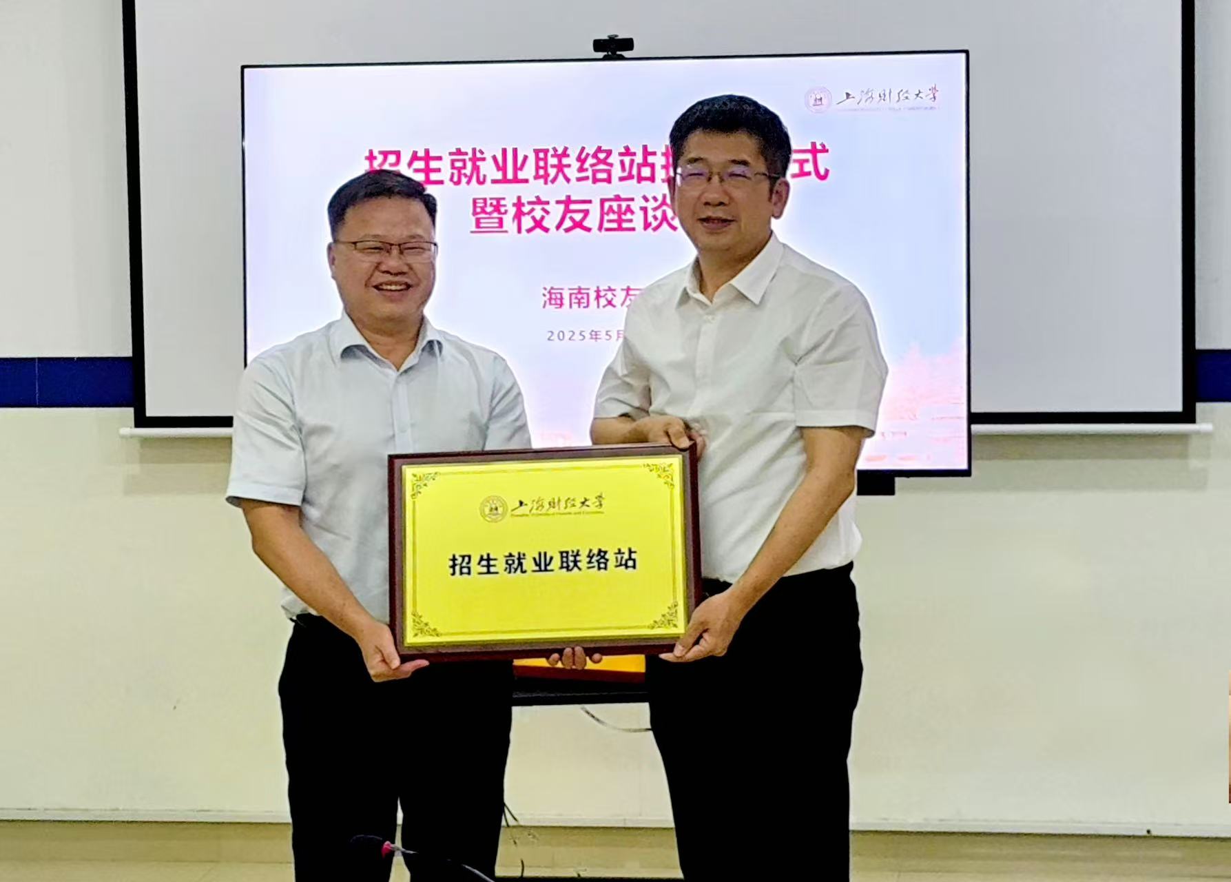 5月17日上午,上海财经大学招生就业海口联络站授牌仪式暨校友座谈会在海口举行。何鹏程副书记一行以及校友会海南代表处30余名校友代表齐聚一堂,共同见证授牌仪式,协力共谋发展新篇。2003级投资专业校友吴欣欣主持会议。