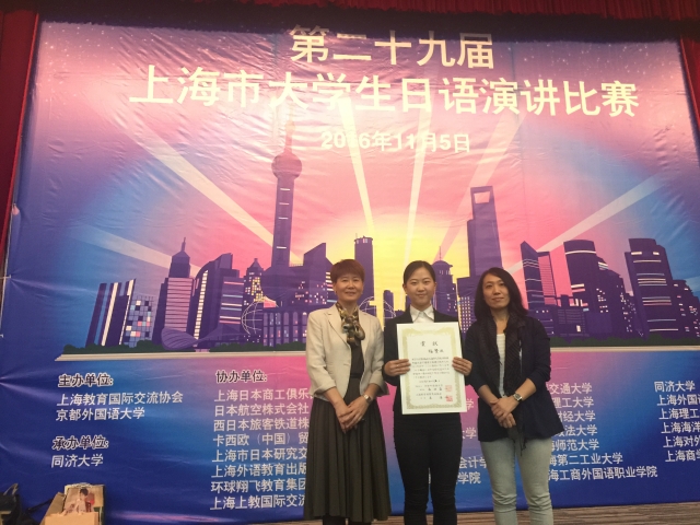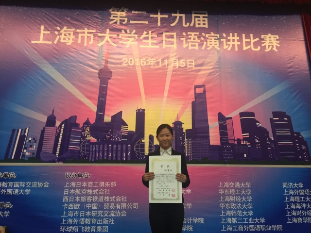 此次比赛由上海20所高校遴选出来的20名选手参赛。经过激烈的角逐,上海财经大学外国语学院日语系2015级的杨赞同学脱颖而出,摘得桂冠,首次为我校赢得了第一名的优秀成绩。