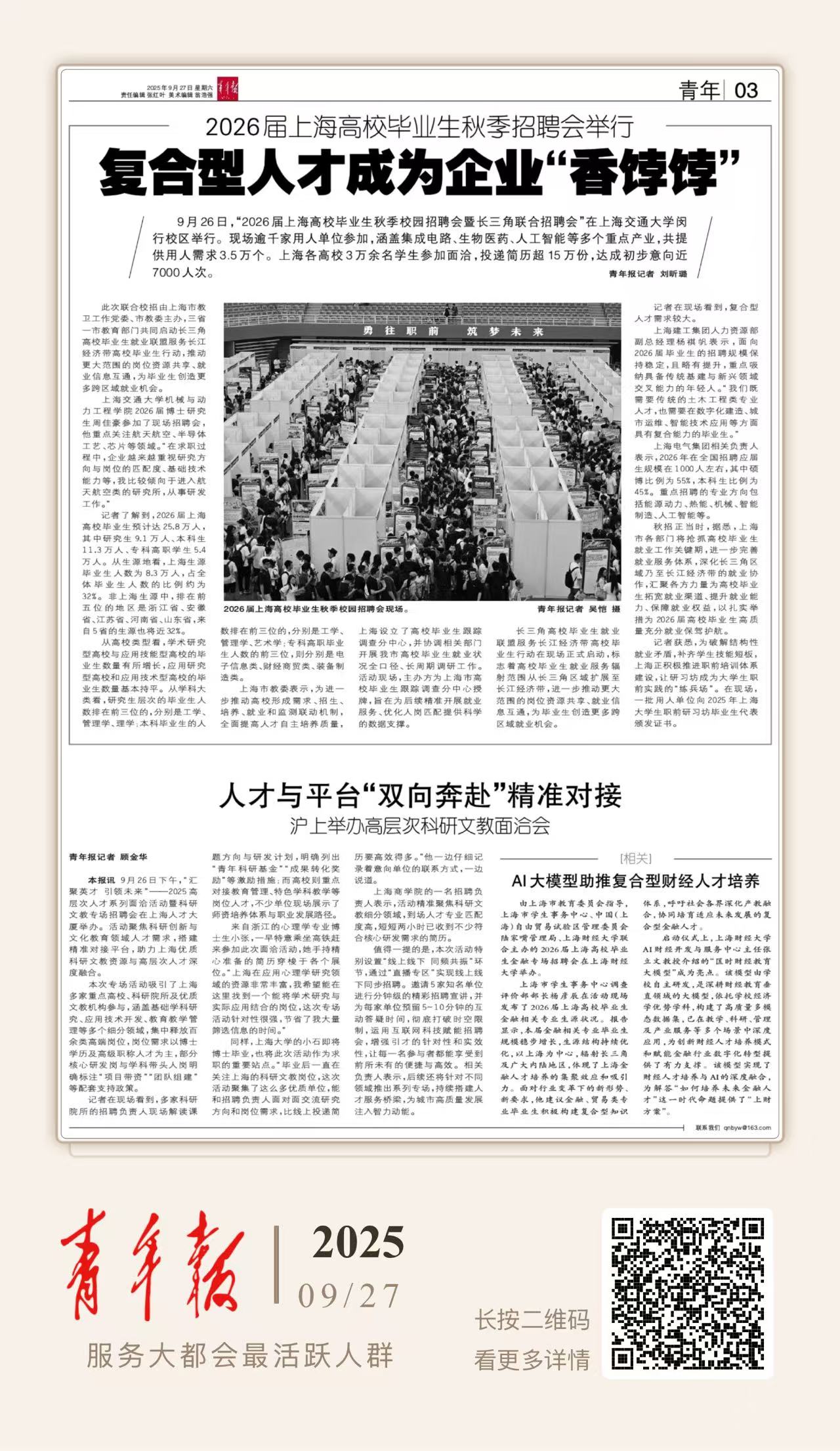 上海商学院的一名招聘负责人表示,活动精准聚焦科研文教细分领域,到场人才专业匹配度高,短短两小时已收到不少符合核心研发需求的简历。