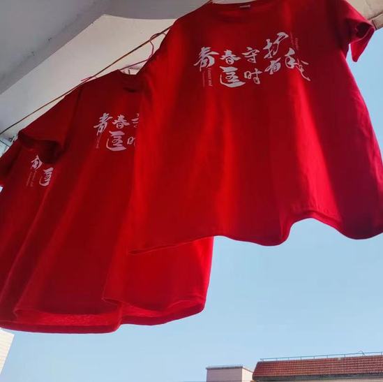 定制五四文化衫,助力物资供给,陪伴守护青年。考虑到天气渐热,部分在校同学缺少夏季衣物,在校董单位友山基金的全力支持下,学校安排校团委牵头负责为同学们加急定制了上财战“疫”专属的五四青年文化衫,于假期期间发放到大家手中。“青春守护 匡时有我”,简洁有力的口号既传递着学校、老师、校友齐心守护莘莘学子的心意,也彰显了上财青年面对这次疫情大考“战疫有我、强国有我”的责任担当。