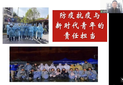 举办“五四云团课”,引领青年思想,坚定抗“疫”信心。4月以来,我校各级团组织围绕学习习近平总书记关于青年工作重要论述、迎接党的二十大、百年五四精神传承、青春战“疫”等多个主题,举办全方位、多角度、全覆盖的“五四云团课”。校团委邀请专业课老师开展《不负青春不负韶华——<习近平与大学生朋友们>导读》《当代中国历史性跨越与中国青年之使命担当》《防疫抗疫与新时代青年的责任担当》等多场主题讲座,并带领学生骨干共同学习领会习近平总书记在中国人民大学考察调研时的重要讲话精神。举办“青听·战疫云团课”系列在线直播活动,邀请专业老师、校区片区负责人、一线辅导员、青年标兵、楼长志愿者等举办开展11场活动,讲述优秀青年故事,师生分享抗疫期间的青春战“疫”故事,凝聚匡时守护力量,坚定战“疫”强大信念,覆盖学生5000余人次。