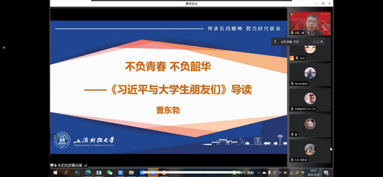 “光荣啊,中国共青团!”这首青春之歌,是对历史的深刻概括,是对现实的生动缩影,更是对未来的清晰志向。站在建团100周年的新起点上,学校将引导广大上财青年牢记党的教诲,立志民族复兴,不负韶华,不负时代,不负人民,抓紧成长成才、建功立业的难得人生际遇,矢志追求更有高度、更有境界、更有品位的人生,在青春的赛道上奋力奔跑,争取跑出当代青年的最好成绩!
