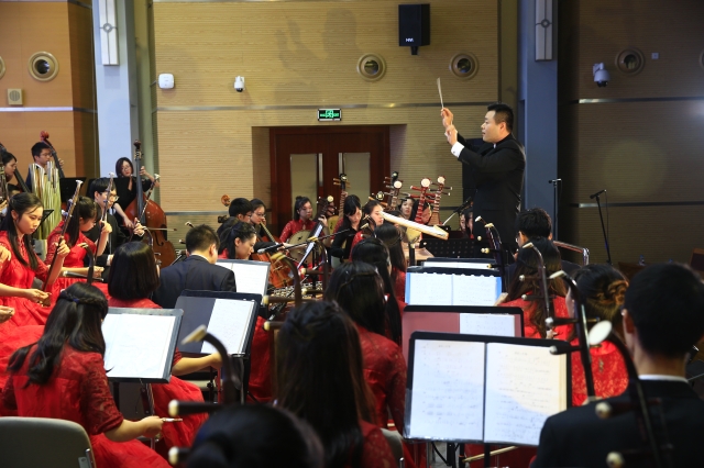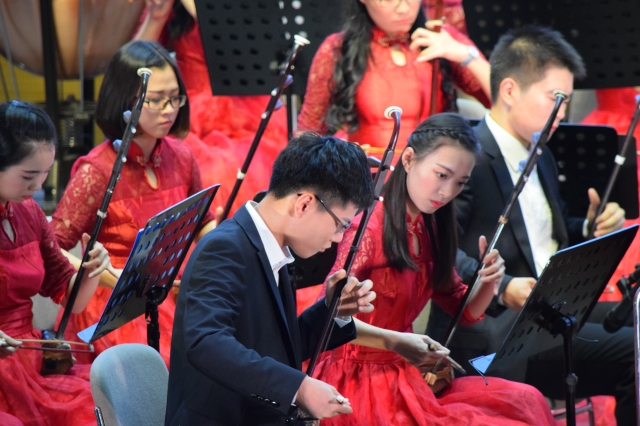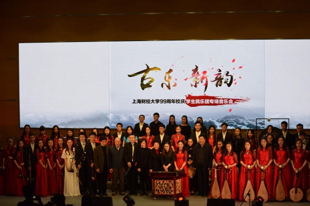 11月12日晚7点,“古乐·新韵”上海财经大学99周年校庆学生民乐团专场音乐会在创业中心一楼报告厅举行。上海财经大学校董会名誉主席刘仲藜先生、金云辉先生,上海财经大学校长樊丽明教授及部分职能部门、学院负责人和校友代表出席了此次音乐会。