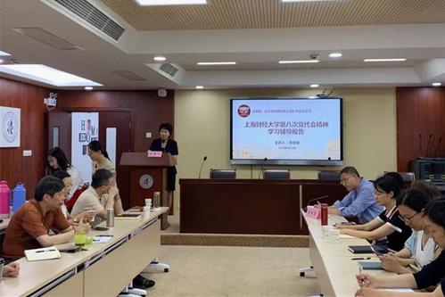6月5日,校第八次党代会代表、校长、党委副书记蒋传海在行政楼四楼会议室为机关党委第十一支部全体党员上专题党课,学习校第八次党代会精神。