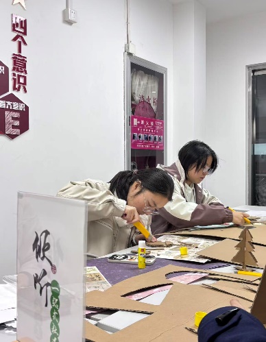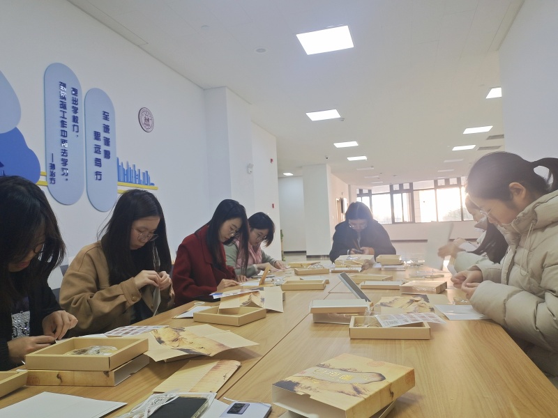 当非遗技艺邂逅古籍形态,便诞生了光影流转的手工书灯。同学们在指导下,细心镂刻、折叠、粘贴、组装,让温暖的灯光从古书造型的灯罩中透出。这束光,照亮的是对传统智慧的敬畏,传递的是手作的温度与人文关怀。在实践中创造美,在光影中品读文化,审美素养与创造热情一同被点亮。