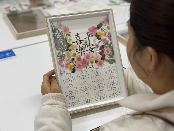 12月9日,来自20号楼的江玉婷同学是今年的大一新生,她说“参与了压花日历制作活动,感到非常开心,不同的花朵赋予了日历别样的色彩,也送给自己最有意义的新年礼物。同时在手工制作的过程中能找到‘心流’的状态,这种专注的情绪很能释放压力,期待之后能继续参加此类活动。”