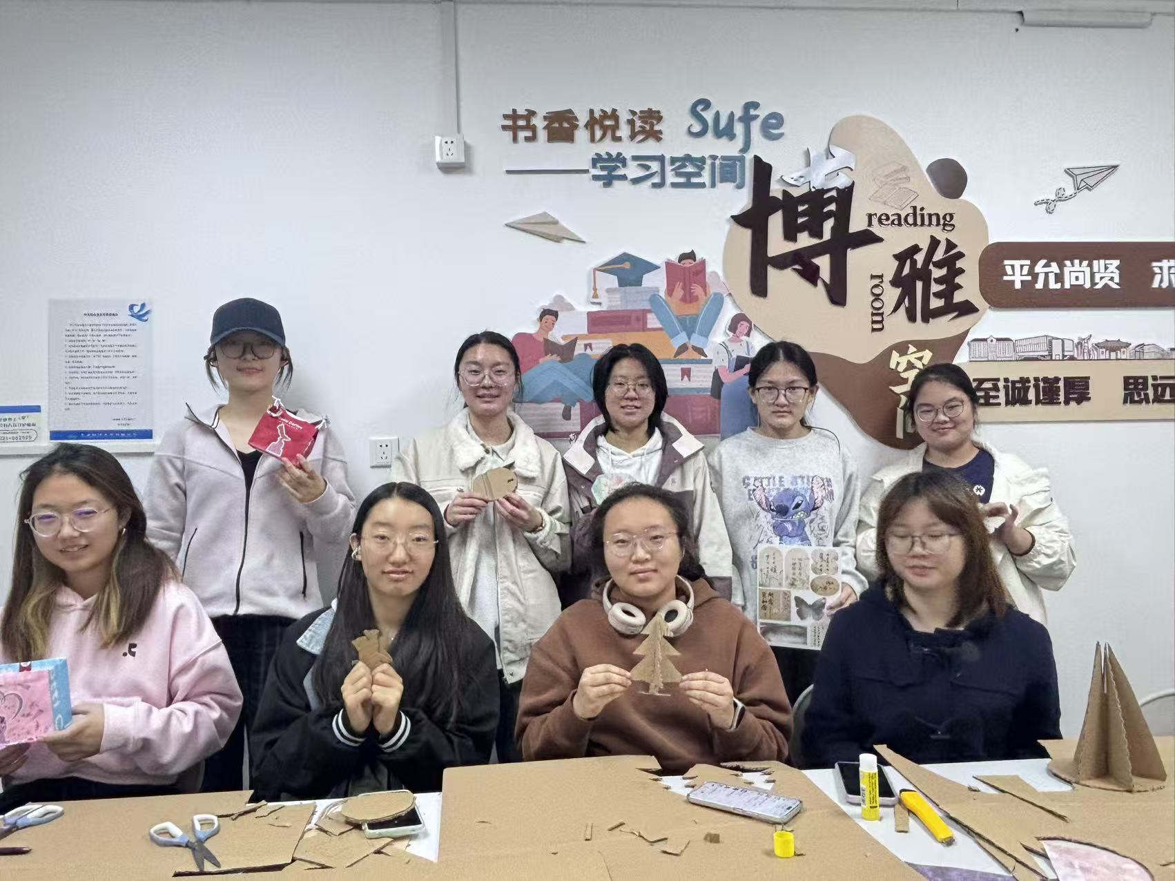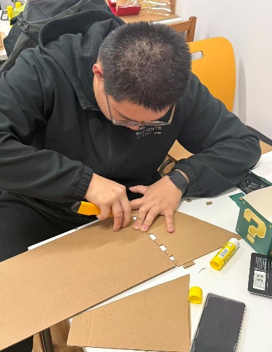 11月29日,来自26号楼的常家康同学表示:“此次与兼职辅导员学长共度的旧物大改造活动,让我收获了满满的动手乐趣与温暖。活动中十分热闹,不少同学自带旧纸箱,在学长的指导下只需简单裁剪,就能将废旧材料化为实用的书立;没有带材料的同学,也能用上学长精心准备的纸板和工具,有人还发挥创意制作了精致的小摆件。我在制作书立时突发奇想,尝试在侧板与底板的连接处采用榫卯结构,这一想法不仅顺利落地,还得到了学长的认可,让我倍感欣喜。这场活动不仅让旧物焕发新生,更在动手实践中拉近了我与学长、同学的距离,也让我感受到了创造的魅力与集体活动的温馨。”