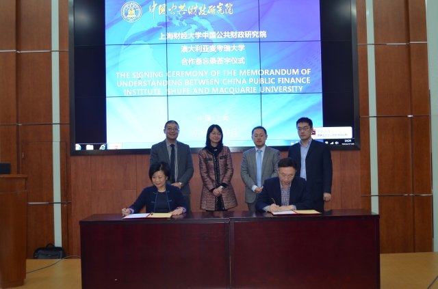 12月9日,上海财经大学中国公共财政研究院与澳大利亚麦考瑞大学合作备忘录签约仪式在上海财经大学举行。本次签约仪式由上海财经大学中国公共财政研究院于洪副院长主持,澳大利亚麦考瑞大学商业与经济学院Philomena Leung副院长、澳大利亚麦考瑞国际处Stephen Fan副主任、上海财经大学中国公共财政研究院刘小川执行院长、上海财经大学国际合作与交流处荣军副处长以及上海财经大学中国公共财政研究院张牧扬博士出席了本次签约仪式。