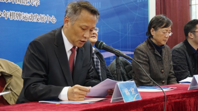 上海财经大学党委副书记陈宏致欢迎词。他表达了对来自各个学校、各个组别的选手的热烈欢迎,展示了我校在围棋、桥牌领域取得的优异成绩,希望在这些领域有天赋和兴趣的运动员们将来能够积极报考上海财经大学,共同发扬上海财经大学在智力运动上的特色和优势。