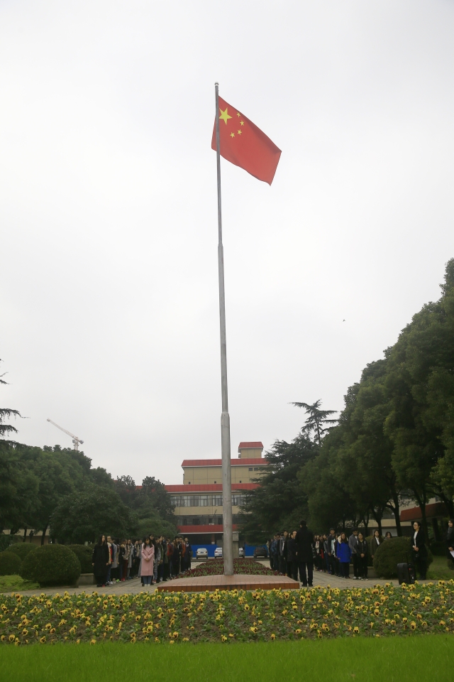 最后,由法学院朱江平同学带领大家进行庄严宣誓:铭记历史,励志复兴,勿忘国耻,矢志前行,捍卫尊严,珍爱和平,发奋图强,圆梦中华。高亢而富有激情的宣誓声回荡在整个国定校园。至此,“国家公祭日”升旗仪式在绵绵细雨中顺利结束。