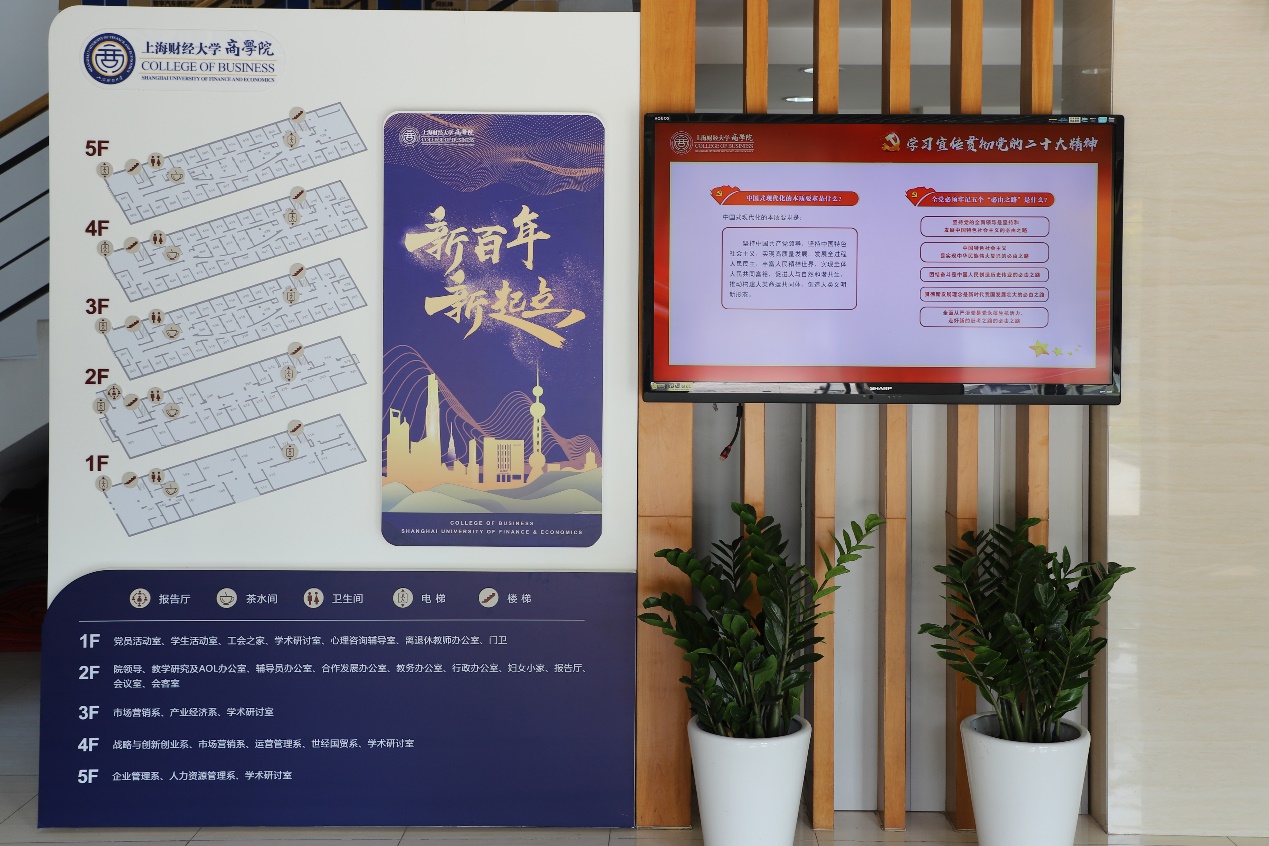 创新线下宣传方式,举办系列主题“微展览”,覆盖育人全场景。商学院丰富线下宣传渠道,发挥让“墙壁说话”功能,推动党的二十大精神在师生中深入人心、落地生根。举办要点展,将振奋人心的二十大报告金句、要点、新理念、新提法、新论断印制出来,尽数展现,让师生领会二十大报告的深刻内涵;开设专题展,聚焦二十大报告中与高校人才培养密切相关的“实施科教兴国战略,强化现代化建设人才支撑”版块,将党的二十大精神原汁原味带给师生;举行落实展,结合学院发展实际和使命愿景,把党中央提出的战略部署转化为具体的工作任务,让师生明白学院发展什么、怎样发展,推动党的二十大精神走深走实。此外,商学院还通过视频轮播、张贴海报等宣传方式,让党的二十大精神覆盖育人全场景。