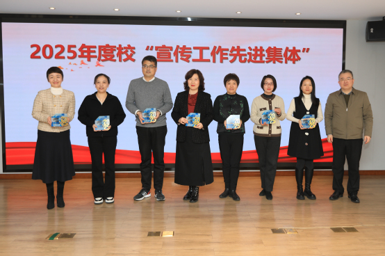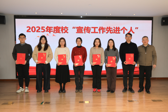 周国良副书记首先向受到表彰的集体和个人表示祝贺,并向辛勤工作在学校宣传思想文化战线的全体同志致以问候。他充分肯定了2025年学校宣传思想文化工作取得的成绩,为学校事业发展营造了良好的舆论氛围。面对新形势与新任务,他对学校宣传思想文化工作提出明确要求与殷切期望:一是要强化规划引领,积极对接国家战略,科学编制并实施好“十五五”规划,稳步助力学校事业发展;二是要紧紧围绕立德树人根本任务,坚持以学生为中心的工作理念,聚焦学生成长发展需求;三是要牢固树立底线意识,严把内容关口,确保意识形态安全;四是要拓宽视野格局,深入了解宣传受众群体以及社会与政策工作动态,强化与兄弟院校的交流协作,积极拓展宣传资源,达成优势互补与协同赋能;五要推进队伍建设,将个人成长融入学校发展的整体格局,携手推动学校宣传思想文化事业跃上新台阶。