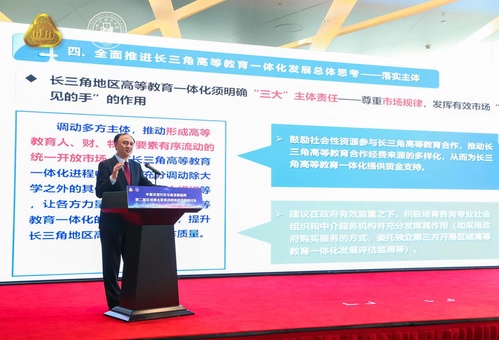 许涛书记强调,长三角地区应当着力打破行政藩篱,加快实现教育要素的自由流动和优势互补,全面构建有序分工、错位竞争及全面协作的教育协同发展格局,率先建设高等教育高水平现代化的引领区,打造全国乃至全球卓越的区域教育协作典范,为深入落实区域重大战略、全面构建新发展格局提供人才和智力支撑。
