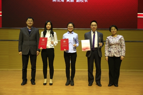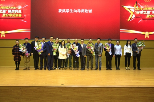 在随后的颁奖环节,黄颖副校长和蒋传海副校长为获得提名奖的同学颁发了荣誉证书和奖杯,樊丽明校长为获得“学术之星”的5名同学颁发了荣誉证书和奖杯。