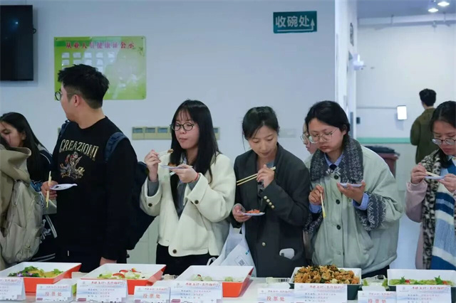 这场品鉴会的特别之处,在于“评”与“选”的环节。师生代表共同参与现场投票,从60道创新菜品中遴选出最受欢迎的作品。入选者将作为本学期新增菜品,长期入驻各大食堂,这意味着,哪道菜能真正走进日常菜单,全由师生手中的一票决定。