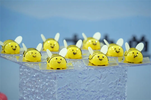 “万紫千红总是春”则完美体现除了融合之味展台的特点,这里汇聚了30道精致中西点心,造型都尤其可爱,小蜜蜂奶糕,熊猫提拉米苏,沙皮狗脏脏包……酥香、绵密、清甜交织。点心刚摆上桌,便让师生们忍不住拍起了照,先让手机“尝一口”。