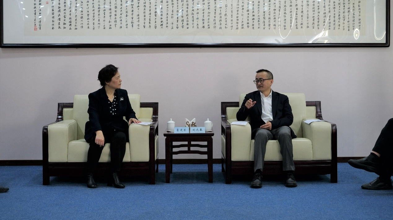 会谈结束后,双方于行政楼三楼会议室开展座谈交流。我校党委副书记朱鸣雄对合肥市委向上财学子提供优质企业、优质岗位表达了欢迎和感谢,也对合肥欣欣向荣的发展前景作了展望。朱鸣雄向合肥一行讲述了上财兴起与发展的历程,并从100多年来涌现出的上财知名经济学家与杰出校友等方面向对方作了介绍,期望校地双方的合作能结出硕果。