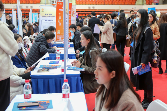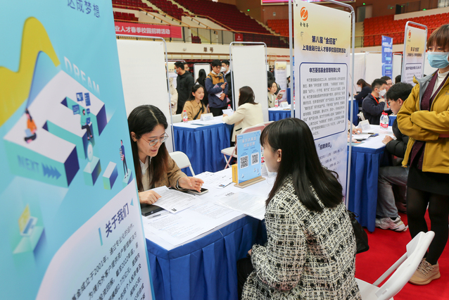 上海对外经贸大学大四本科生:在班群里看见辅导员发的“金招荟”招聘活动很心动,所以特地从学校赶过来,我没有升学打算,想直接就业,这么好的机会当然不能错过。