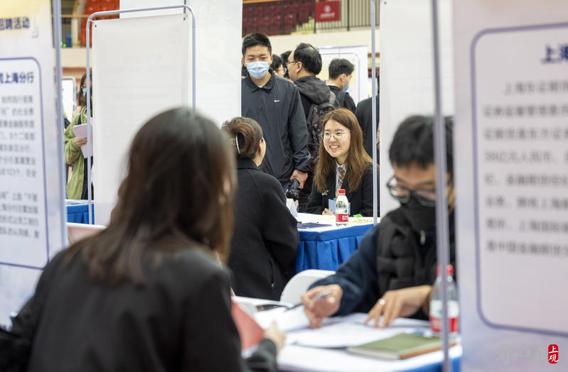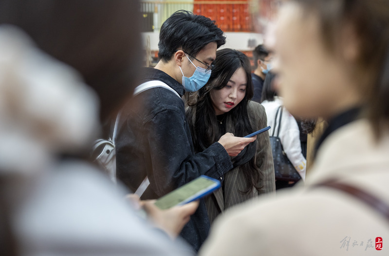 小张高中时到国外学习,本科就读于墨尔本大学,研究生在悉尼大学学习商业数据分析专业,毕业后选择回国寻找就业机会。为了参加今天的招聘会,小张提前一天从广东老家赶到上海。“因为之前受疫情影响,回国后一直在进行线上面试,进入校园参加线下招聘会这还是第一次。找工作要尽可能面对面地谈,这样可以了解得更清晰。”